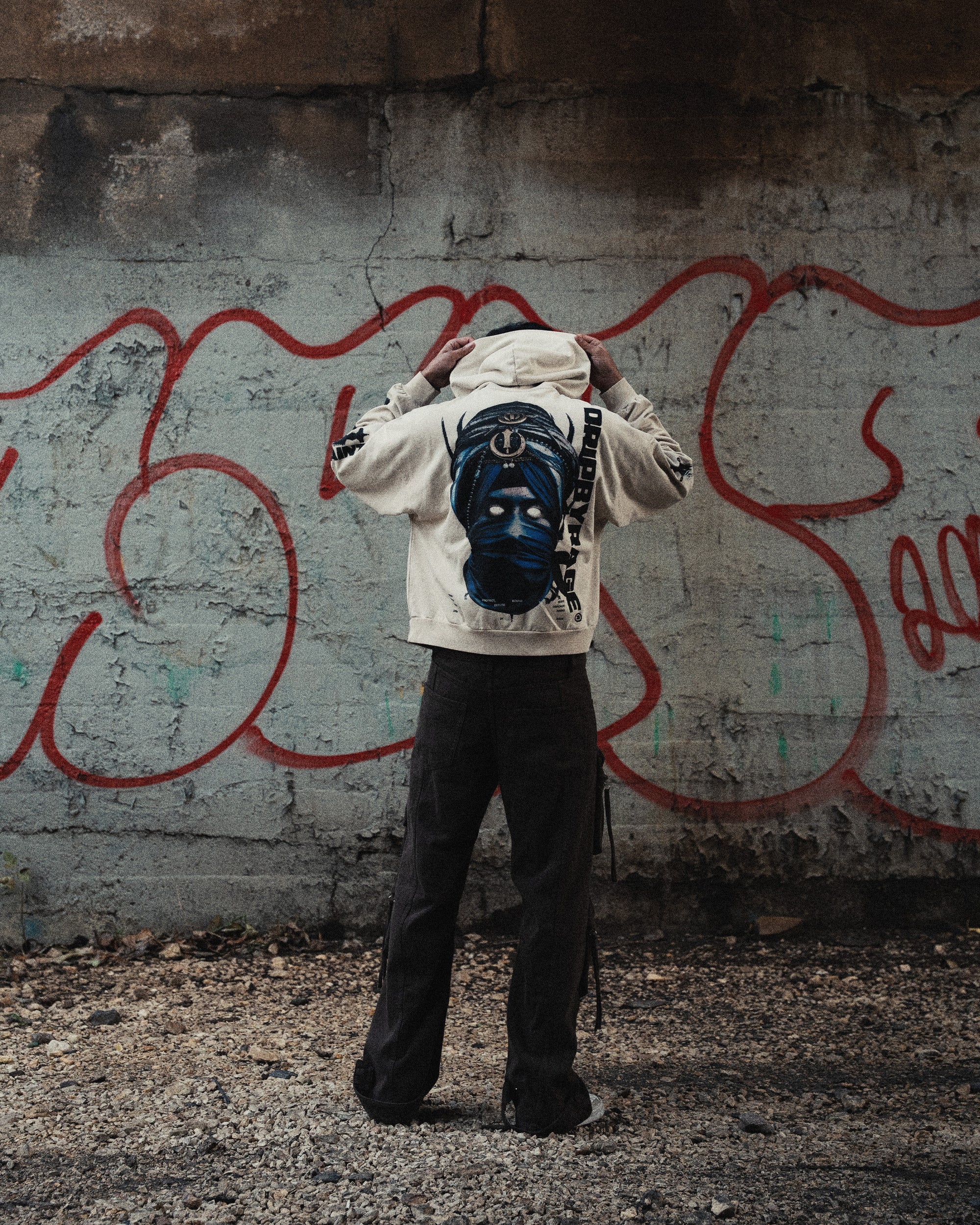 REBEL PROTOCOL BIG PRINT SUN FADED BOXY HOODIE