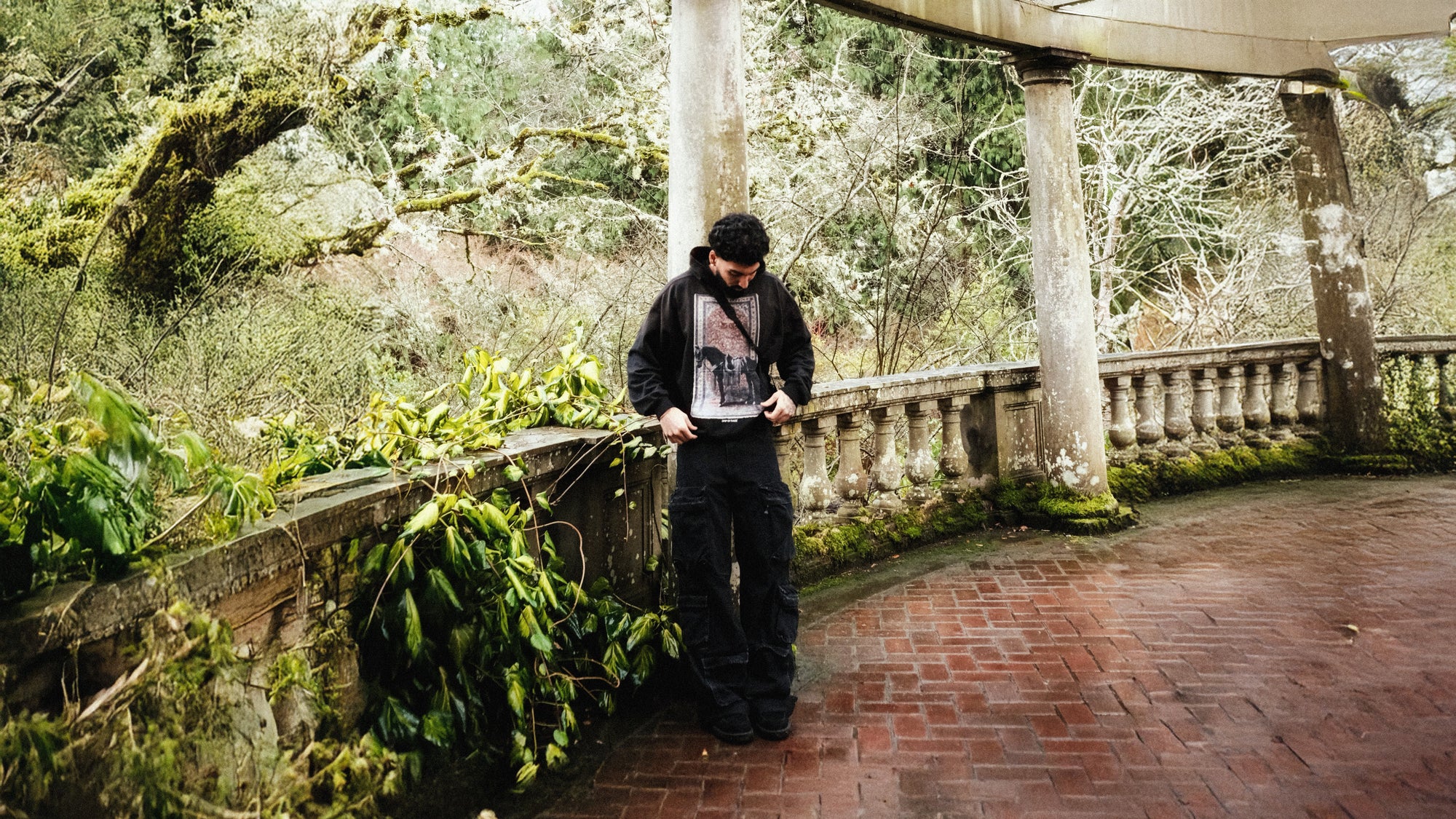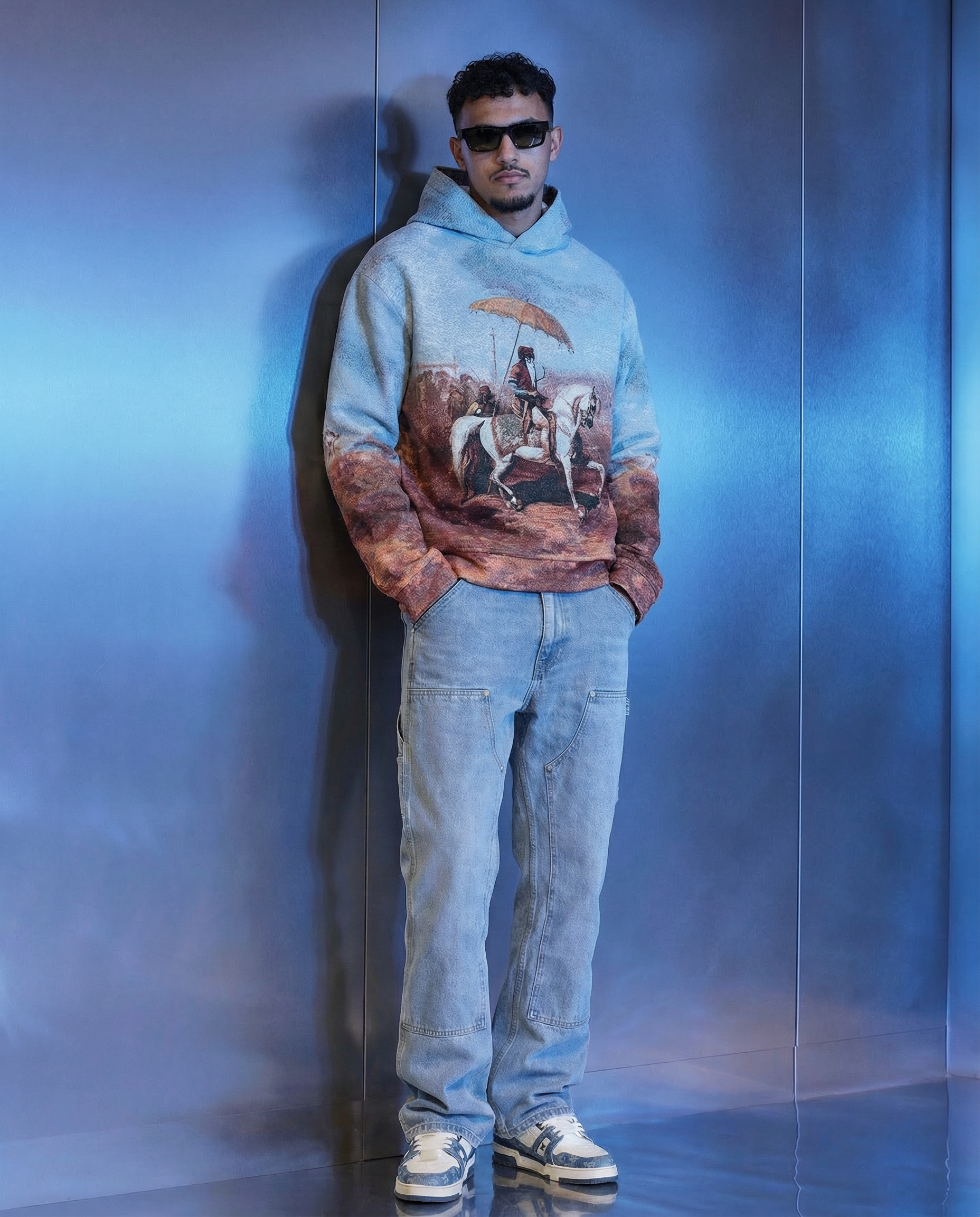 WATER OF PANJAB BIG PRINT SUN FADED BOXY HOODIE
