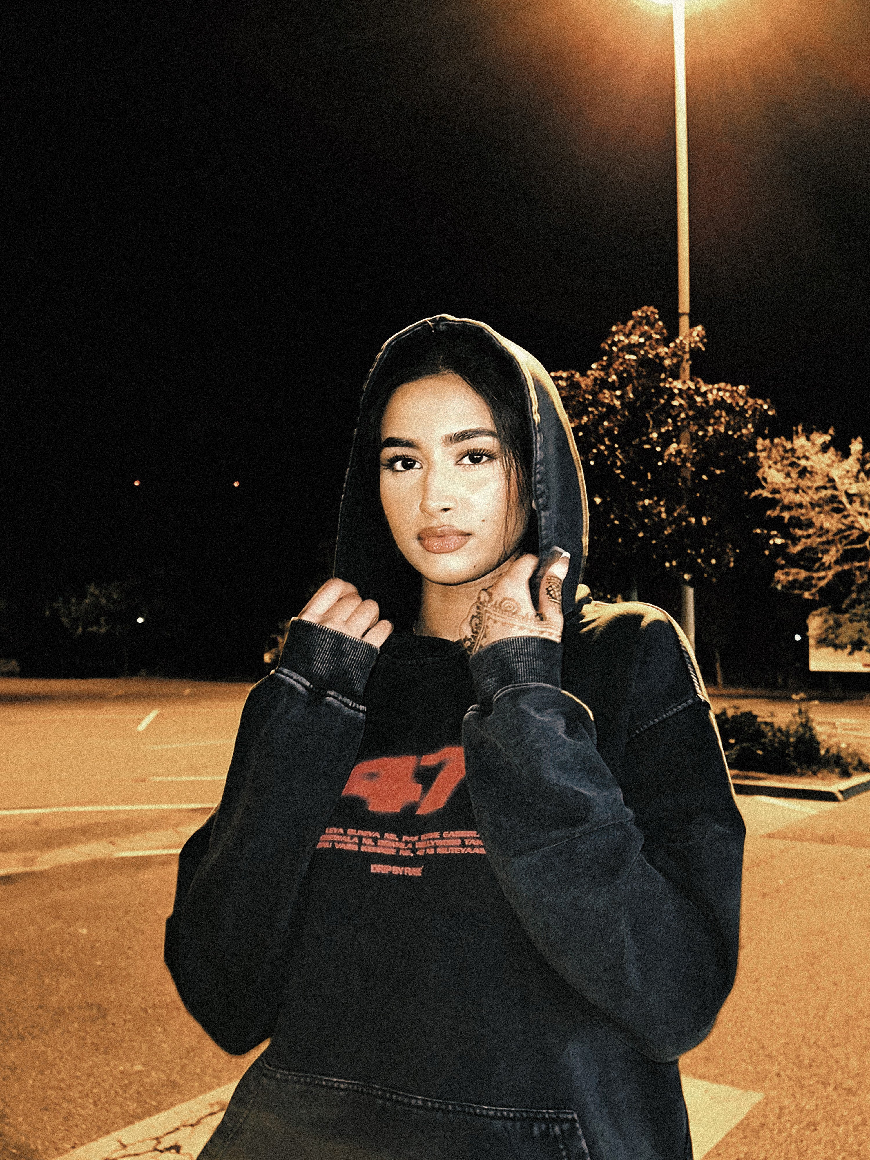 47 RED EDITION OVERSIZED FADED HOODIE BLACK